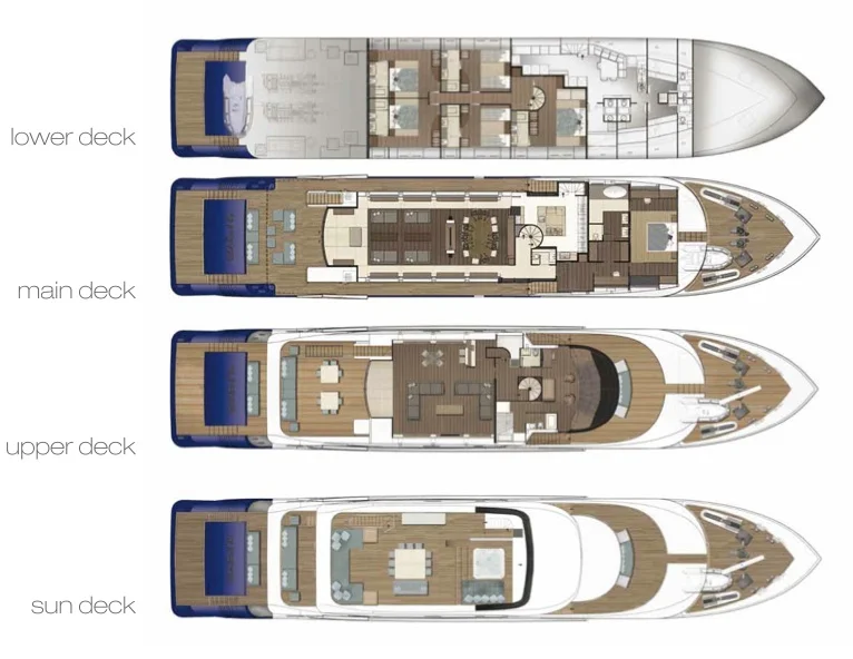 Rates are NOT inclusive of Charter Extras (CE); Advanced provisioning allowance (APA) , Value Added Tax (VAT,) Re-positioning (if applicable), entry visas or customs clearance (if applicable), fuel costs for selected itinerary, crew gratuity , and other costs associated with the charter. All rates are for a 7 day charter. See financials for more details. Taxation/Entry Visa policies have changed. Check with your Yacht Charter Specialist to review all up to date in country regulations and requirements. All fuel requirements have taxation requirements imposed. While every effort is made by the Captain to receive tax reduced fuel - it is not guaranteed. All yachts are subject to confirmed availability in writing. This document is not contractual. All specifications are given in good faith and offered for informational purposes only. The publisher and company do not warrant or assume any legal liability or responsibility for the accuracy, completeness, or usefulness of any information and/or images displayed. Yacht inventory, specifications and charter prices are subject to change without prior notice. None of the text and/or images used in this brochure may be reproduced without written consent from the publisher.